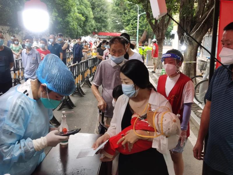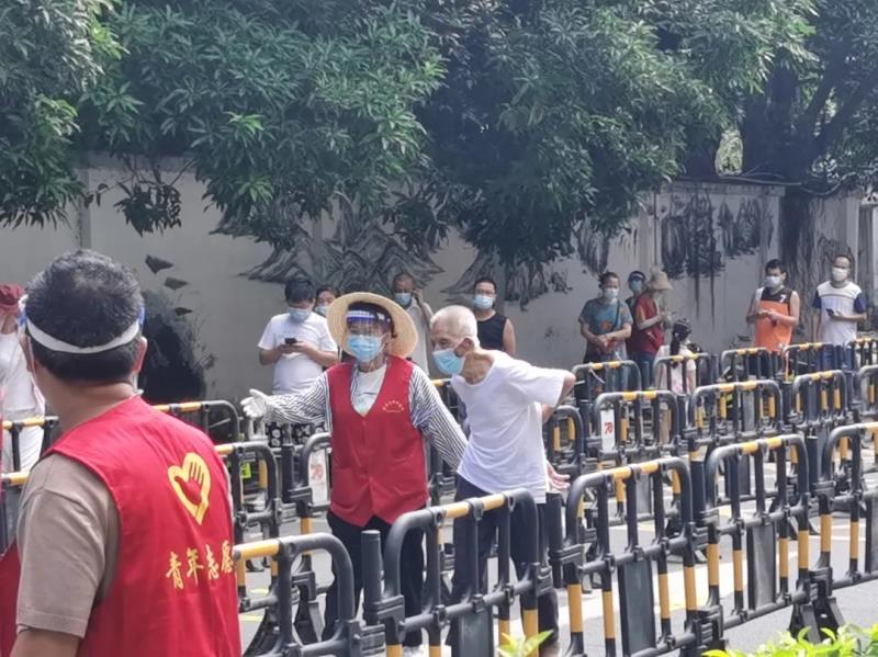 核酸檢測(cè)期間,志愿者耐心督促市民遵守“一米線”原則,查看健康碼、檢測(cè)體溫、錄入信息......園林志愿者們動(dòng)作迅速、合作默契。